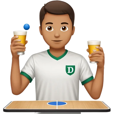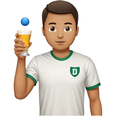 Dog drinking a beer in a fancy glass while swimming with a shark emoji