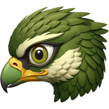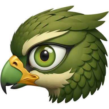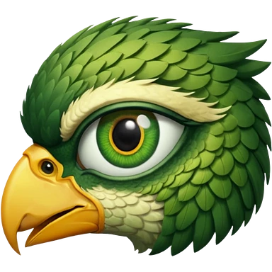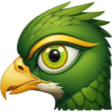 close up of just the eye and nothing else at the side profile of the face of a green hawk that is looking away from the camera emoji