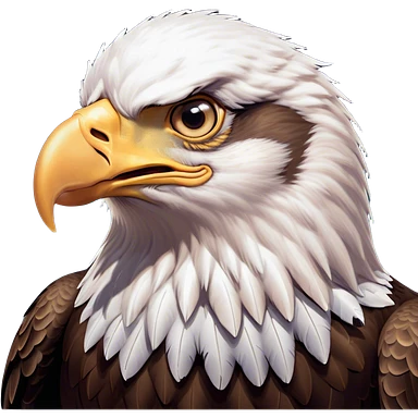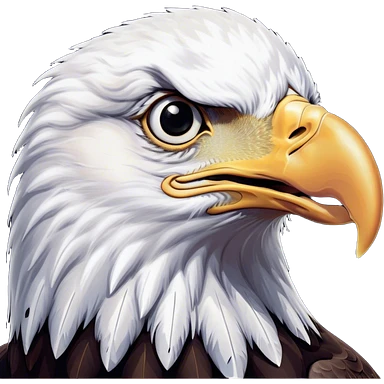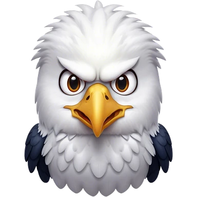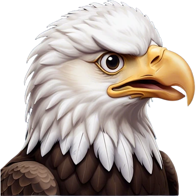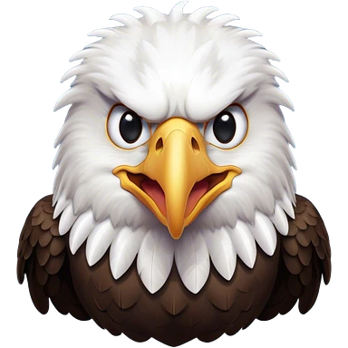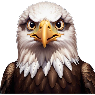 Cinematic Comical American Eagle Portrait Emoji, Head tilted dramatically with an exaggeratedly shocked expression, featuring a robust, powerful form with wide, comically expressive eyes full of playful disbelief and a mix of stark white and dark plumage, Simplified yet hilariously expressive features, highly detailed, glowing with a slightly sassy majestic glow, high shine, dramatic yet playful, stylized with an air of cheeky aerial mischief, soft glowing outline, capturing the essence of a meme-worthy American eagle that looks ready to side-eye its way into viral fame! emoji