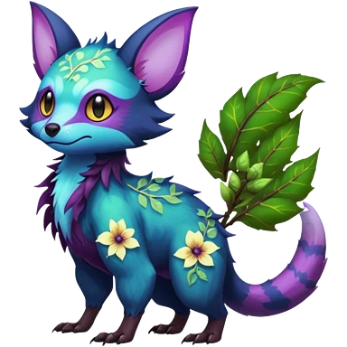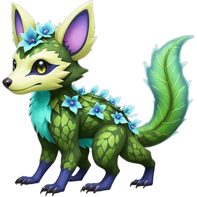 Realistic Sharp swampy mossy elemental ivy floral detailed Colorful translucent luminescent glowing Trico-Noibat-batty-Sergal-Furret-Ferret-Wolverine-Vernid-furry-fursona-fusion-Fakemon-animal-hybrid-creature, full body emoji