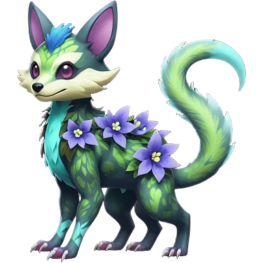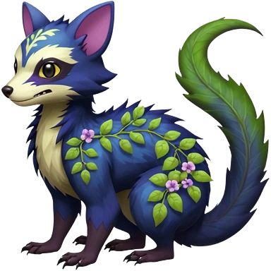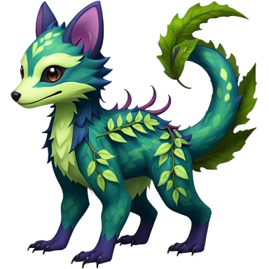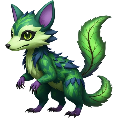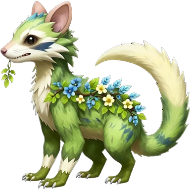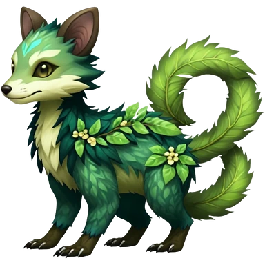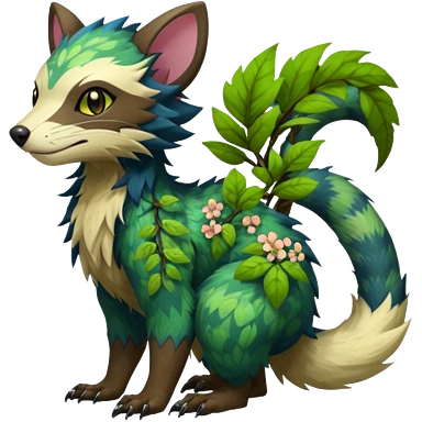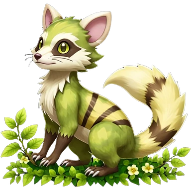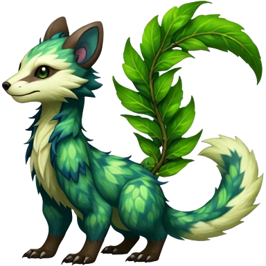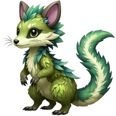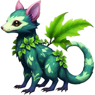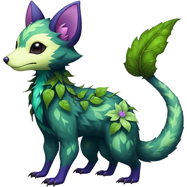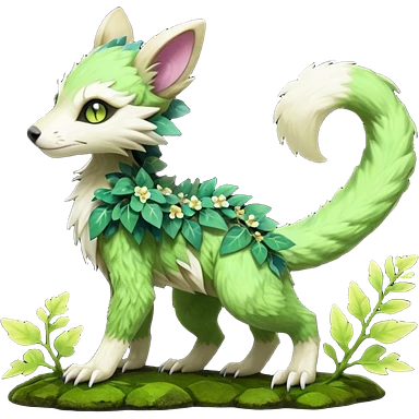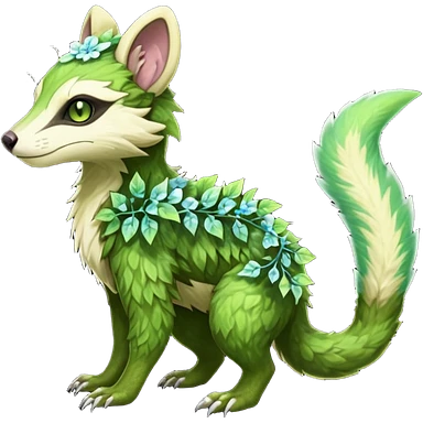 Sharp swampy realistic mossy grassy elemental ivy floral detailed Colorful furry Trico-Sergal-Furret-Ferret-Wolverine-Vernid-furry-fursona-fusion-Fakemon-animal-hybrid-creature, full body emoji | AI Emoji Generator