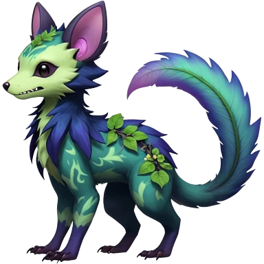Sharp swampy realistic mossy grassy elemental ivy floral detailed Colorful translucent luminescent glowing Trico-Sergal-Furret-Ferret-Wolverine-Vernid-furry-fursona-fusion-Fakemon-animal-hybrid-creature, full body emoji
