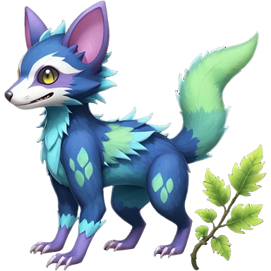 Sharp realistic mossy grassy elemental ivy floral detailed Colorful translucent luminescent glowing Trico-Sergal-Furret-Ferret-Wolverine-Vernid-furry-fursona-fusion-Fakemon-animal-hybrid-creature, full body emoji