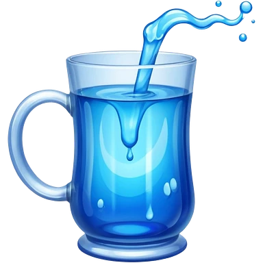 A large clear glass mug with a bright blue liquid inside. Mug had no curve to it, up and down with ridges. Similar to a beer mug. For a drink called a trashcan emoji