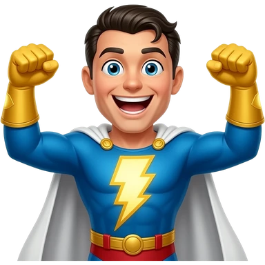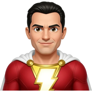 Create an emoji of shazam with red suit and white cloak with a symbol of lightning on his chest emoji