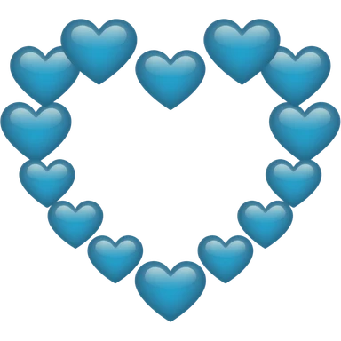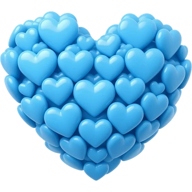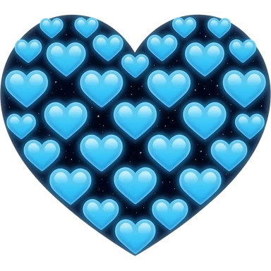 many blue light hearts creating a bigger heart emoji