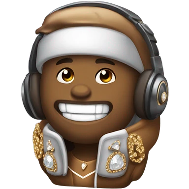 attractive bronze colored sports capper wearing athletic starter jacket wearing headset and has diamonds and jewels for teeth emoji