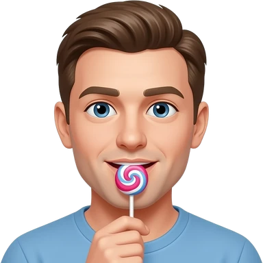sheep plush on its knees eating sucking a hotdog in its mouth with big wet squishy big puffy filler Botox lips with a syringe on the floor with no teeth with a person with brown short hair and blue B&J Pajamas sits on a chair watching emoji | AI Emoji Generator