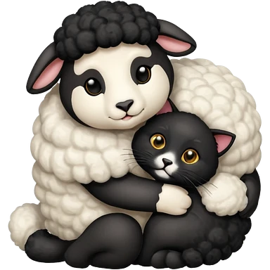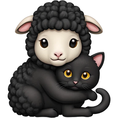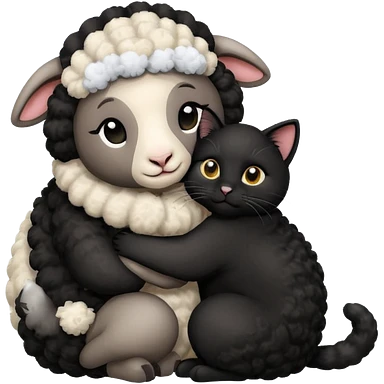 SHeep hugging a black cat emoji