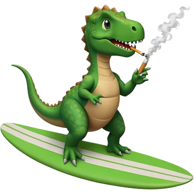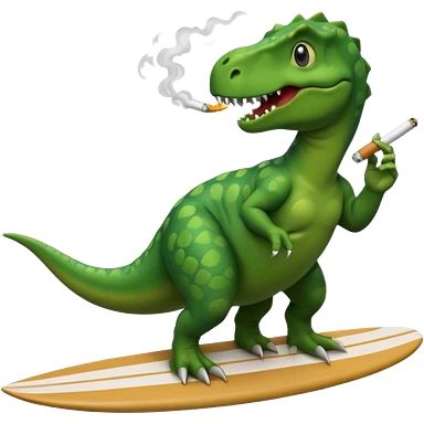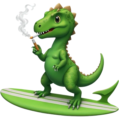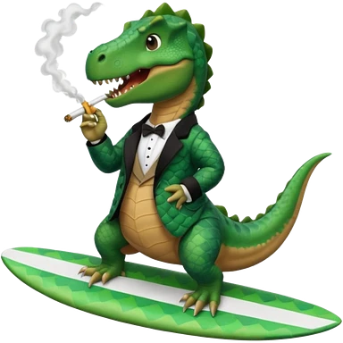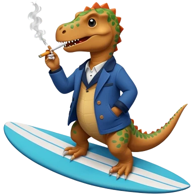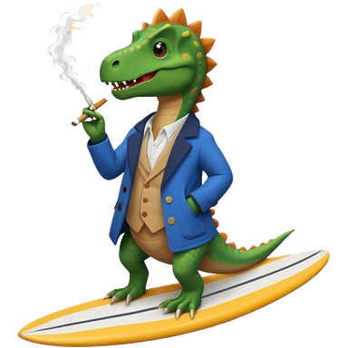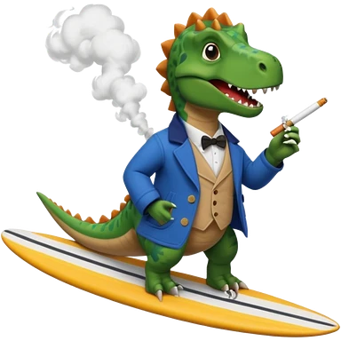 dinosual smokig a ciggerett while surfing wearing designer coat emoji