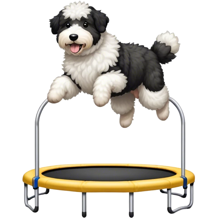Sheepadoodle jumping on a trampoline emoji | AI Emoji Generator