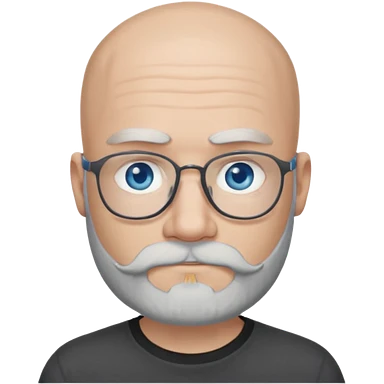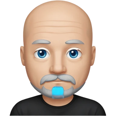 Bald man with blue eyes grey beard and moustache. Hipster. No glasses. Black T-shirt emoji