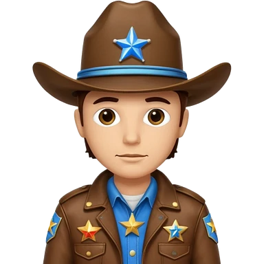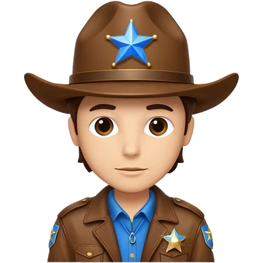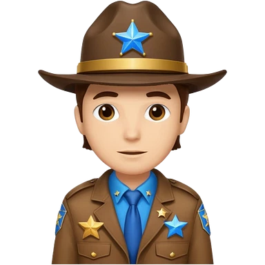 Sheriff with shiny blue star badge, brown jacket and blue hat emoji