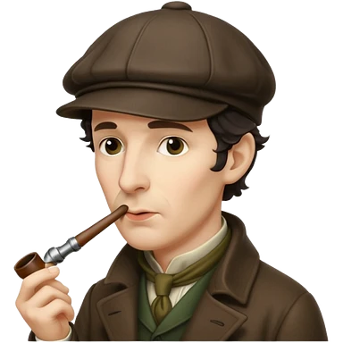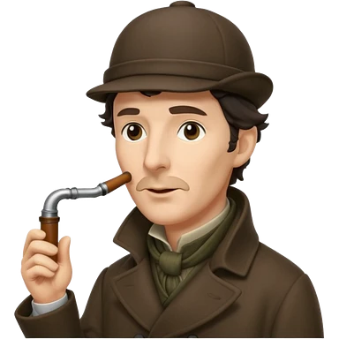 sherlock holmes in a deerstalker hat with a pipe emoji
