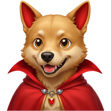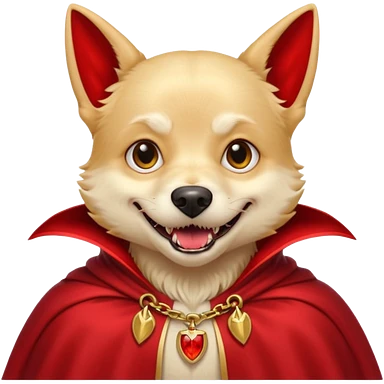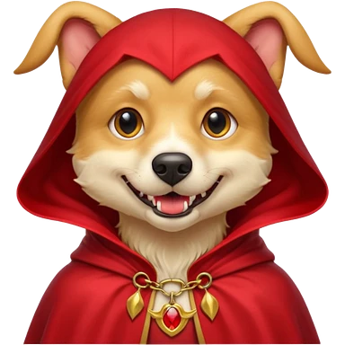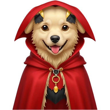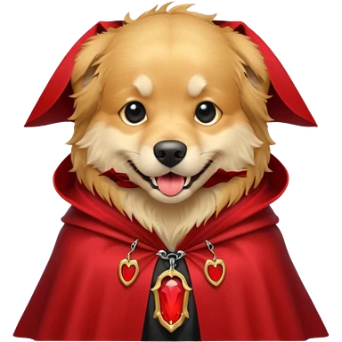 { "type": "object", "look": "dog in red collar cloak", "description": "a loyal vampire dog wearing a red collar cloak" } emoji