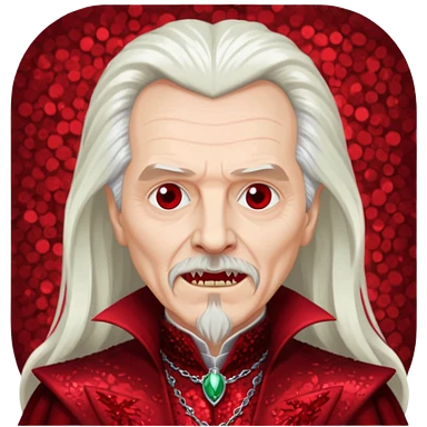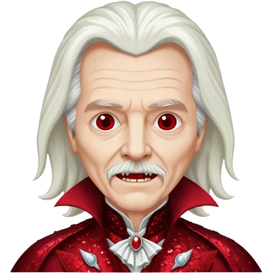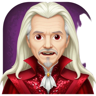 Gary Oldman as Dracula with long white hair, dark red sequin outfit, without glasses emoji