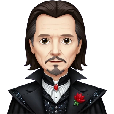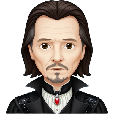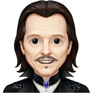 Gary Oldman as Dracula with long dark brown hair, black sequin outfit, without glasses emoji