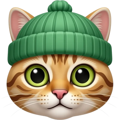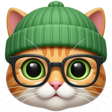 spectacled cat wearing green beanie, face emoji
