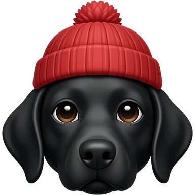 black dog with red beanie, face emoji