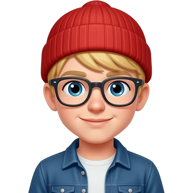 blond boy with red beanie and glassess emoji
