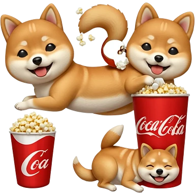 fais moi 20 emoji avec differente reaction avec un shiba inu, qui est mdr, qui pleure, qui mange, qui se roule, qui saute, qui mange du pop corn, qui boit un coca, qui dort les 4 pattes en l'air, et d'autre emoji