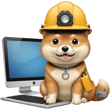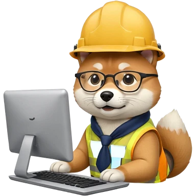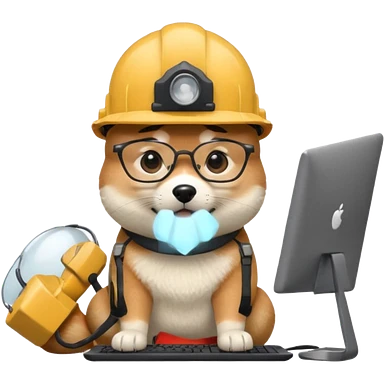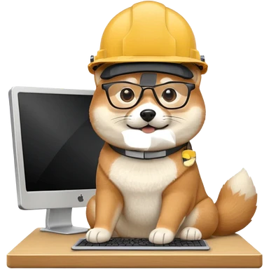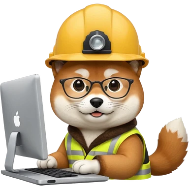 shiba inu with eye glasses and computer wearing a hard hat emoji