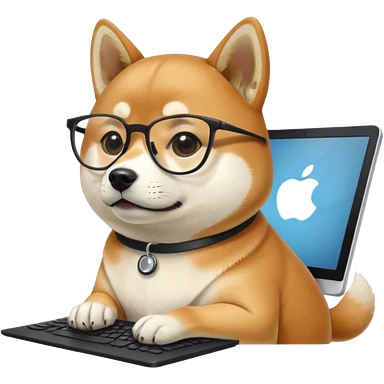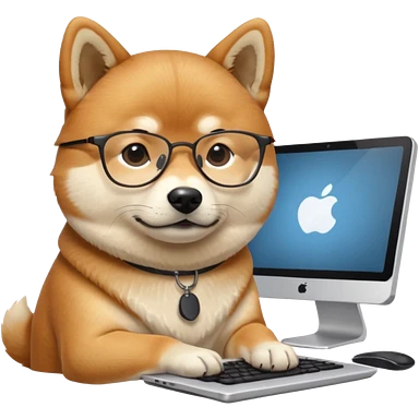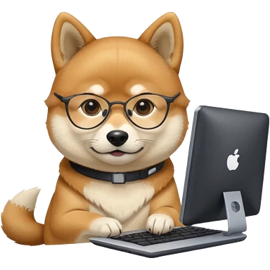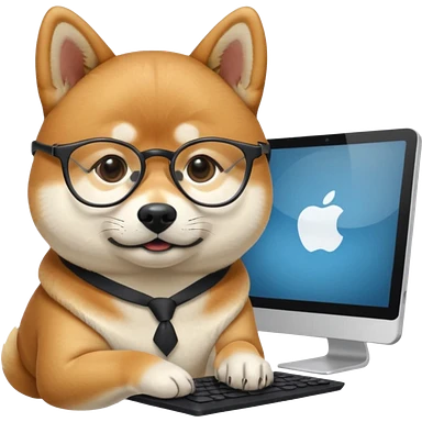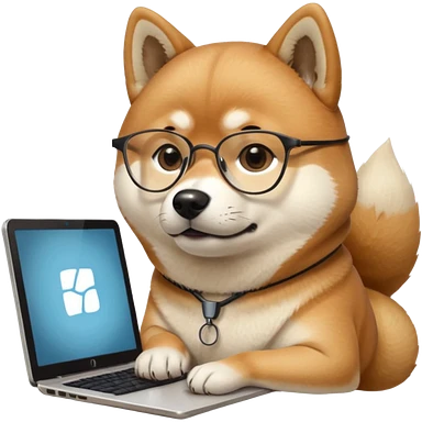 creative shiba inu with eye glasses and computer emoji