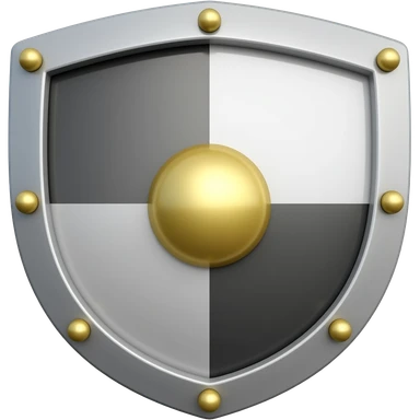 Minimalist 3D emoji based on: a stylized, geometric shield made of heavy, matte black steel with polished chrome facets. Sharp, severe edges. Studio lighting, pure white background. emoji