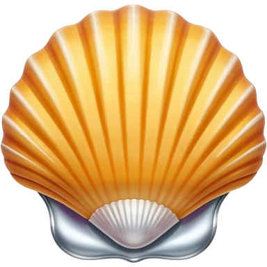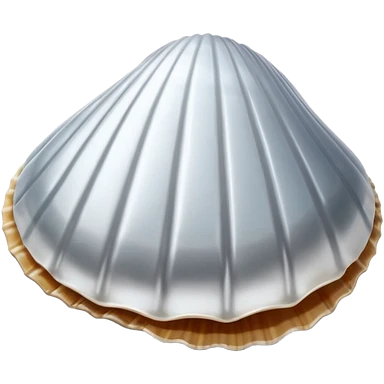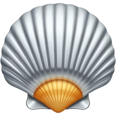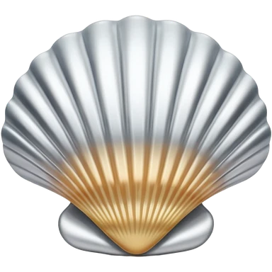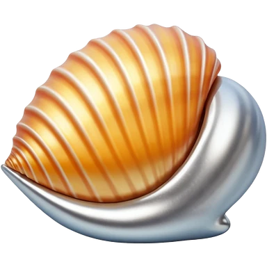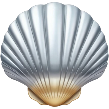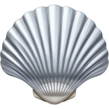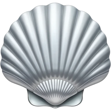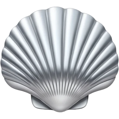 A seashell emoji made of polished silver chrome, smooth curved surface, reflective metallic highlights, elegant minimal design, iOS emoji style, centered, clean white background, soft lighting emoji