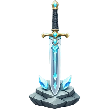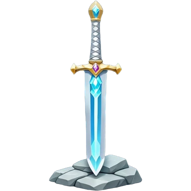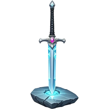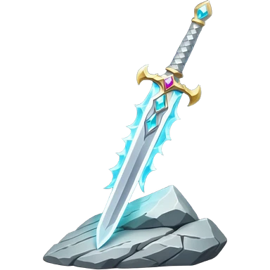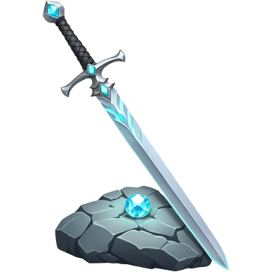 Shining silver sword with jeweled hilt, stuck in a stone, glowing aura. emoji