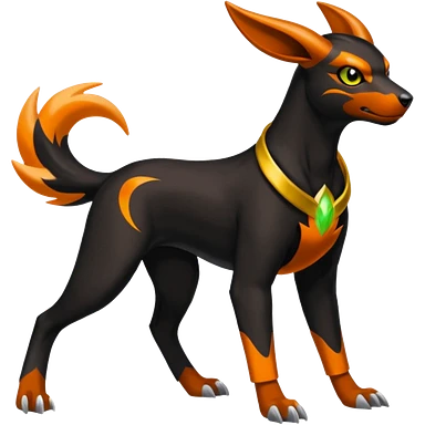 Shiny 4-legged Umbreon-Houndoom-Anubis-Salandit-Zeraora-fusion, full body emoji