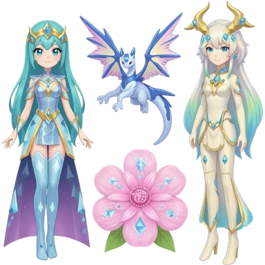 Shiny pastel feathery tropical exotic shimmering silky smooth soft flurry Diancie-Palkia-Amaura-Aurorus-aesthetic-fusion emoji