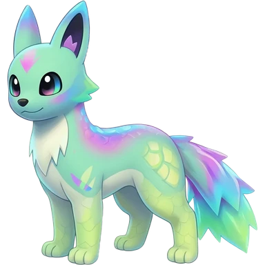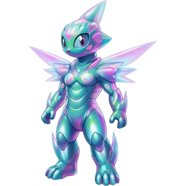Shiny sparkly transparent bioluminescent luminescent vibrant bright pastel dark exotic iridescent colorful nebula rainbow gradients cyber-Protogen-Fakémon-Pokémon-Vernid-creature emoji