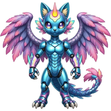 Shiny Colorful Futuristic Cyber-Meloetta-Latias-Koraidon-Peppercat-Protogen-Pokémon-Digimon-Fakémon-fusion-hybrid-creature emoji