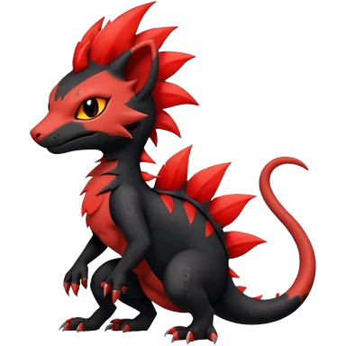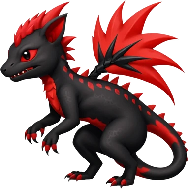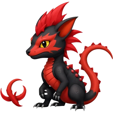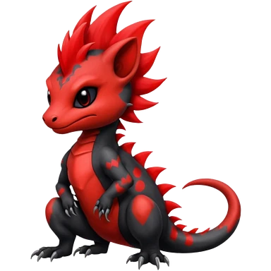 Shiny Fiery gothic evil black and red salandit-Liten-torracat with a red Mohawk emoji