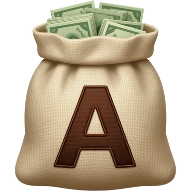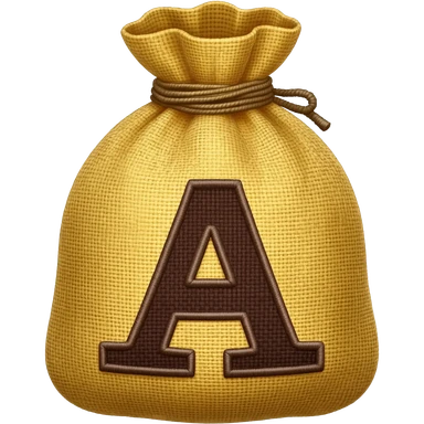 A bag of money but, it have a letter A in the place of the dollar symbol, don't use the $ symbol, just an A in that place, do de A letter in dark brown color and made it like embroidery, do it without money but do it with an A, no with $ emoji