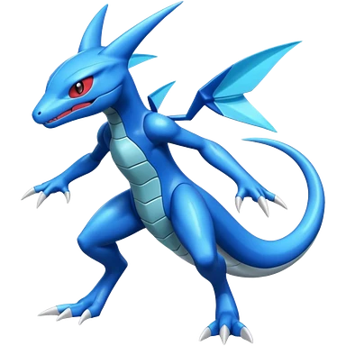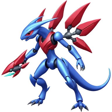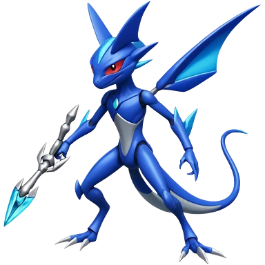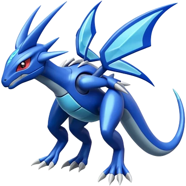Shiny Blue Smooth Glossy Soft Salamence-Inteleon-Scizor-Greninja-Genesect-Bisharp-Pokémon-Fusion, full body emoji