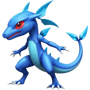 Shiny Blue Smooth Glossy Soft Salamence-Greninja-Inteleon-Scizor-Greninja-Genesect-Bisharp-Pokémon-Fusion, full body emoji