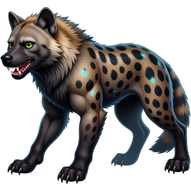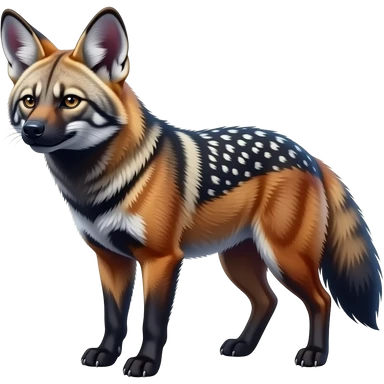 Shiny Colorful Dusky Dark Gloomy Glossy Aardwolf-Maned-Wolf-Genet-Bobcat-fusion-animal-hybrid-creature, full body emoji