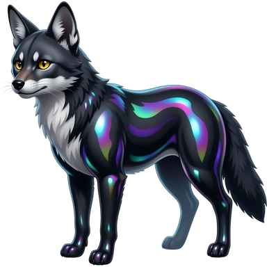 Shiny melanistic Colorful Iridescent Albino Melanistic Bobcat-Caracal-Leopard-Genet-Pokémon-Digimon-Fakémon-fusion-hybrid-creature emoji