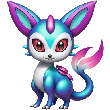 Shiny Colorful glowing glossy smooth soft silky Futuristic Cyber-Vernid-Trico-Meloetta-Latias-Koraidon-Peppercat-Protogen-Pokémon-Digimon-Fakémon-fusion-hybrid-creature emoji