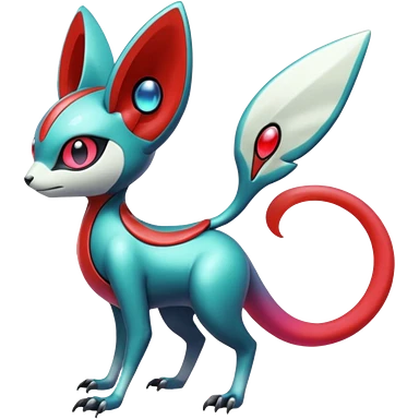 Shiny exotic animalistic feral Colorful glowing glossy smooth soft silky Futuristic Cyber-Vernid-Trico-Meloetta-Latias-Koraidon-Peppercat-Protogen-Pokémon-Digimon-Fakémon-fusion-hybrid-creature emoji