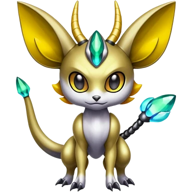 Shiny Colorful Futuristic Horned Cyber-Vernid-Trico-Meloetta-Grem2-Peppercat-Protogen-Pokémon-Digimon-Fakémon-fusion-hybrid-creature emoji