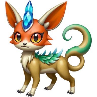 Shiny Colorful Horned Vernid-Trico-Meloetta-Grem2-Peppercat-Protogen-Pokémon-Digimon-Fakémon-fusion-hybrid-creature emoji