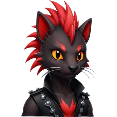 Shiny cool badass Fiery gothic evil black and red salandit-Liten-torracat with a red Mohawk emoji | AI Emoji Generator