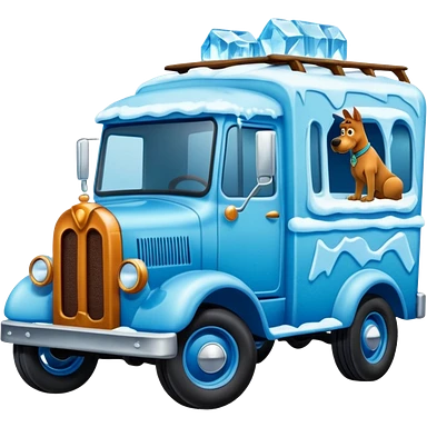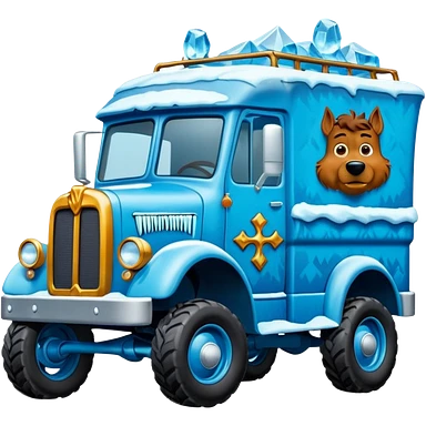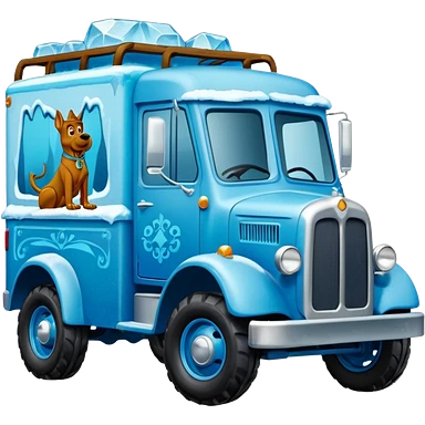 shiny crushed-dark-ice-blue crystal frozen Scooby Doo 1912 antique long-wheelbase cab over off-road trails low rider moving truck emoji
