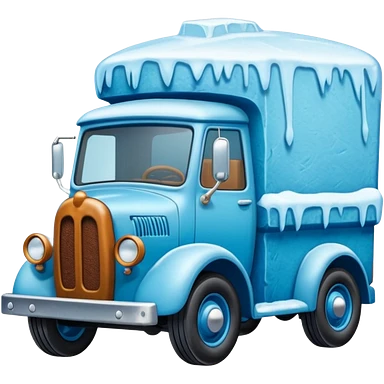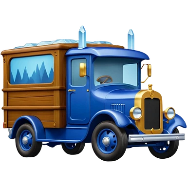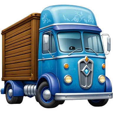 shiny crushed-dark-blue crystal-bodied frozen blueberry muffin pie 1912 antique long-wheelbase cab over durable-looking low rider moving truck food truck emoji | AI Emoji Generator
