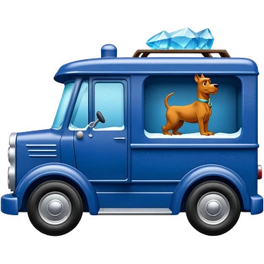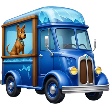 shiny crushed-dark-blue crystal body frozen Scooby Doo 1912 antique long-wheelbase cab over low-rider moving truck emoji