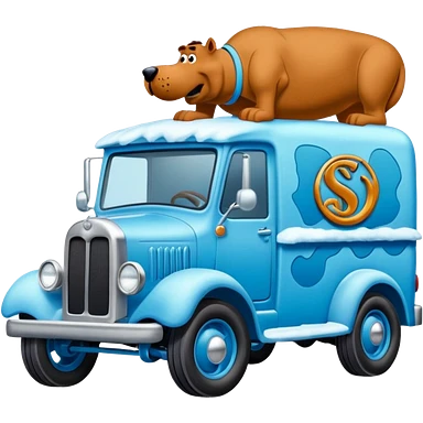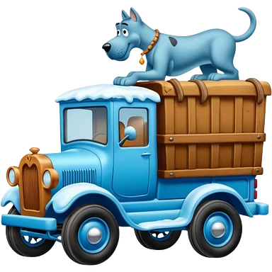 The Flintstones shiny crushed-dark-ice-blue frozen Scooby Doo 1912 antique long-wheelbase snub-nose off-road moving truck emoji