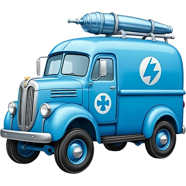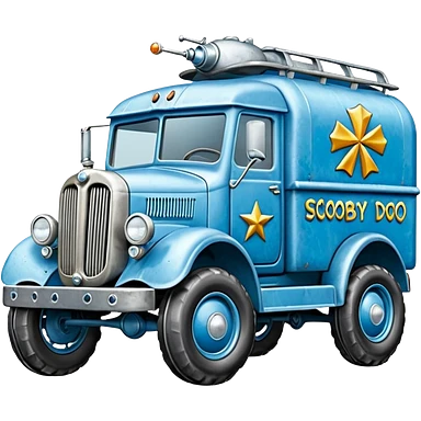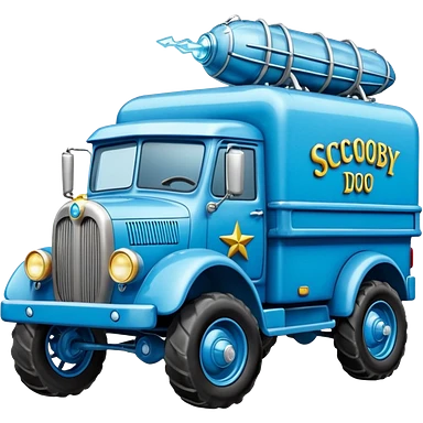 The Flintstones shiny crushed-iced-blue frozen Scooby Doo 1945 Lightning Bug busters liquidator’s antique long-wheelbase snub-nose off-road moving truck emoji